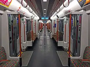 The units were delivered in two subclasses; an AC-only version  subclass /1  for use on the Lea Valley lines and Romford–Upminster services, and a dual-voltage version  subclass /2  for the Watford DC and Gospel Oak to Barking line services. These carry pantographs on their PMS(W) vehicles[1] and are maintained at Willesden TMD, while the subclass /1 units are maintained at Ilford EMU Depot.[8] Both versions have all-longitudinal seating, after the plan to fit some transverse seats to the AC units was dropped.