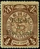 On 20 April 1901 Chinese 1⁄2c stamps were overprinted B.R.A. / 5 / Five Cents for use by the British Railway Administration in the North China Railway. The stamp was in use for only 30 days and it was used for the collection of the 5c late letter fee. The late fee was abolished on 20 May 1901 and the stamp withdrawn. These stamps exist both with black overprinted characters and green overprinted characters.