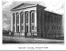 ![]() Broad Street Wesleyan Chapel from the History and Antiquities of Nottingham. James Orange. 1840. | |