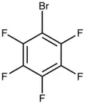 Bromopentafluorobenzene is an organofluorine compound with the formula C6F5Br. It is a colorless liquid that is used to prepare pentafluophenyl compounds. These syntheses typically proceed via the intermediacy of C6F5Li or the Grignard reagent.[1] Illustrative is preparation of tris(pentafluorophenyl)borane:[2]