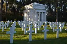 This 4.5-acre (1.8 ha) site lies to the west of the civilian cemetery. It contains the graves, from World War I of 468 American military dead and a further 563 with no known grave are commemorated.