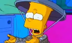 Taking the drug, Bart becomes an eager and diligent student. His parents think they can safely go out for an intimate evening together, but when they come home Bart is in his room wrapped in aluminum foil, with a garbage can lid on his head, and numerous coat hangers dangling from the ceiling. He claims that Major League Baseball is spying on the town using a satellite. The doctors recommend that Bart be weaned off Focusyn, but he refuses, swallows several handfuls of the pills and runs away.