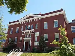 The Blanche K. Bruce School was an all-black school and community center during the Jim Crow era. In July 1898, the District of Columbia public school trustees ordered that a then new public school building on Marshall Street be named the Bruce School in his honor.[8] The Bruce School building was designed by architect William M. Poindexter in Renaissance Revival style of red brick with stone and pressed metal trim, with two floors of four rooms each. In 1927, a Colonial Revival style eight-room annex was constructed, designed by architect Albert L. Harris.[9]