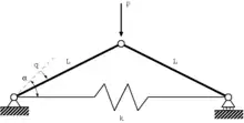 ![]() A tied truss model with inclined links and horizontal spring. |