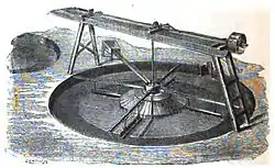 A diagram of a working concave buddle, from Machinery for Metalliferous Mines, by E. Henry Davies, 1902