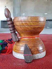 Bugchu (Punjabi: ਬੁਘਚੂ), also spelled as Bughchu, Bugdu or Bughdu, is a traditional musical instrument native to the Punjab region.[1][2] It is used in various cultural activities like folk music and folk dances[3] such as bhangra,[4] Malwai Giddha[5] etc. It is a simple but unique instrument made of wood. Its shape is very similar to the damru,[5] an Indian musical instrument. It makes a sound similar to its name, "bugchoo".