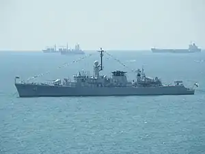 The equipment is typical for a small navy, consisting mostly of light multi-purpose vessels – four frigates, three corvettes, five minesweepers, three fast missile craft and two landing ships. Other equipment includes a coastal defence missile battalion armed with locally modified P-15 Termit missiles, a coastal artillery battery, a naval helicopter airbase and a marine special forces unit.