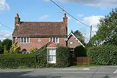 Later the Axe and Compass was probably a butchers too, when it was licensed to a William Larkcom.[6] After William's death in 1891, it was licensed to his daughter Elizabeth.[7] By 1924 it was still in the Larkcom family, having been taken over by Elizabeth's brother, another William.[8] Other licensees followed: Chas Prince from at least 1928 to 1931 [9] and William George Alsbury from at least 1964 to 1971 [10] Opposite Nut & Bolt House is a building named The Bungalow, although it is not a bungalow. Until around 2010 it was named Compass Pightle, providing a link between Axe and Compass and the use of artisan tools as names and symbols and Sloe Pightle and the now archaic use of the word pightle for a small field or clearing.