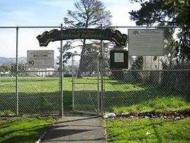 The park was established in 1903 through the donation of seven and a half acres of land[4] by Dr. Bushrod Washington James, a resident of Philadelphia, Pennsylvania.[4][5] In the 1910s it was used as a school playground.[4] It has had a long association with local baseball; baseball players Rickey Henderson, Frank Robinson, Billy Martin, and Vada Pinson played at Bushrod in their youth.[6] In the 1960s, the park was used as a practice field by the Oakland Raiders.[7][8] The tennis courts are named for Don Budge who played here as a youth.[9]
