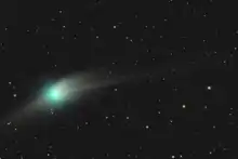 C/2022 E3 (ZTF) is a non-periodic comet from the Oort cloud that was discovered by the Zwicky Transient Facility (ZTF) on 2 March 2022.[1] The comet has a bright green glow around its nucleus, due to the effect of sunlight on diatomic carbon and cyanogen.[6][5] The comet's systematic designation starts with C to indicate that it is not a periodic comet, and "2022 E3" means that it was the third comet to be discovered in the first half of March 2022.[5]
