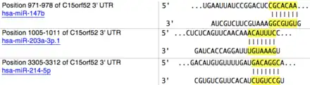 - ↑ AceView entry on C15orf52 gene