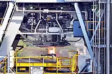 CE-20 during static testing at Cryo Main Engine and Static Test facility (CMEST) of ISRO Propulsion Complex (IPRC), Mahendragiri on 19 February 2016