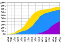 The milestone of 60% population coverage of partial vaccination (at least 1 of 2 doses) was reached on August 24, 2021. On September 23, 250.3 thousand boosters had already been administered.[76] On March 30, 2022, 75% of the population was fully vaccinated.