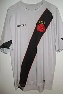Vasco currently has three kits. The home shirt's main color is black with a white sash. The short and the socks are black. The away kit is similar to the home kit, but the main color is white, the sash is black, and the shorts and socks are white. In 2009–10 the third kit was all white, with a red "cross of the Knights Templar". In 2010, the away kit changed to black in honor of 1923's team, which gave up playing for having black players, as they were not allowed to play with white players at that time.