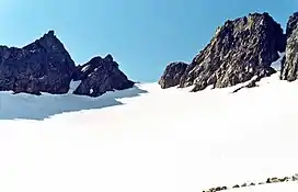 Gunsight Notch, which is lower on the Cache Glacier and should not be mistaken for Cache Col