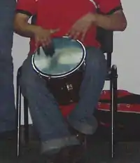 Modern Version: similar in made to a congas drum but shorter in height (approximately 30 cm or 12 in). Made out of the same wood base but no ropes are used to stretch and hold the skin, instead a metal frame bolted to the wooden base is used to hold the animal skin or X-ray photo (radiograph) made skin.
