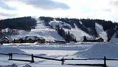 Calabogie Peaks is a ski resort in the municipality of Greater Madawaska, Renfrew County in Eastern Ontario, Canada. It is located 80 kilometres (50 mi) west of Ottawa, and was founded in 1969.[2] Although the resort is named after the nearby community of Calabogie and Calabogie Lake, the mountain is called Dicksons Mountain.[1] Calabogie Peaks Resort offers the highest vertical drop among public ski hills in Ontario, 238 metres (781 ft). In addition to the beginner hill, Calabogie offers the longest beginner trail in Ontario, as well as plenty of intermediate and expert runs.