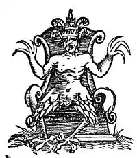 The Zamorin of Calicut as portrayed by the Dutch. More specifically, a depiction of "Deumo", a demon from distorted accounts of a local deity.