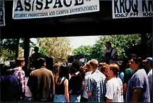 Classes started on September 24, 1956, in temporary buildings, with an enrollment of 1,500 students.[13] Delmar Oviatt, the former namesake of the current campus library, was the dean of the satellite campus until July 1, 1958, when the campus separated from Los Angeles State College and was renamed San Fernando Valley State College (popularly abbreviated to Valley State College, Valley State, or SFVSC) after the California Legislature passed Assembly Bill No. 971.[14][15] Ralph Prator was assigned as the first president of the university and enrollment reached 2,525 with a tuition of $29 per semester.[9][13] During that same year, the first graduation ceremony was held for around 100 students at the Hollywood Bowl before being moved to campus during subsequent years.[13] In 1959, the university became the first State College to have its own computer.[9] In 1964, the pioneering computer lab was moved into new quarters in the recently completed Sierra Hall building complex, and student enrollment reached nearly 12,000.[9] Other buildings were also swiftly constructed during the early 1960s to accommodate this rapidly growing student population.[13] Additionally, in November 1963 the university established its own radio station, which continues operation to this day as KCSN.[13]