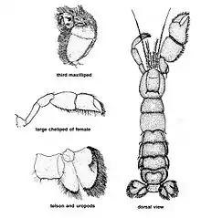 - ↑ Manning RB, Felder DL (1991) Revision of the American Callianassidae (Crustacea: Decapoda: Thalassinidea). Proceedings of the Biological Society of Washington, 104 [4]: 764-792.
