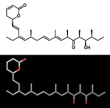 - ↑ Hamamoto, T.; Seto, H.; Beppu, T. (1983). "Leptomycins A and B, new antifungal antibiotics. II. Structure elucidation". J. Antibiot. 36 (6): 646–650. doi:10.7164/antibiotics.36.646. PMID 6874586.