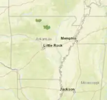 The Hell Creek Cave crayfish can be found in various stream habitats in Arkansas. Within these habitats it thrives on muddy stream bottoms or along cave stream walls.[4] These habitats have no visible light and a stable, low temperature. The aquatic system in this environment is relatively stable, except for occasional flooding when it rains.[5] Its preferred habitat conditions are mostly identical among the various locations it is located.