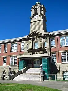 During the Second World War, the Young Building was converted into a military hospital.[10] In 1946, the building was returned to its original function as an educational institution shared between the Normal School and Victoria College, which were united in 1956.