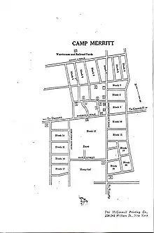 - ↑ Tiedman, Howard and Zimmer, William. "Camp Merritt: The Most Used, The Least Remembered". VFW Post 3286, Cresskill, New Jersey, page 30.