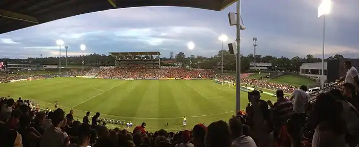 Western Sydney Wanderers FC defeated Newcastle Jets FC 2–1 in a 2012–13 season Regional Round match at the venue. The game was attended by 10,589 fans. The Wanderers would return to the stadium against the same opposition in the 2016–17 season during the redevelopment of Parramatta Stadium. In 2016, Western Sydney Wanderers FC announced that the club would be playing all their 2017 AFC Champions League games at Campbelltown Stadium.