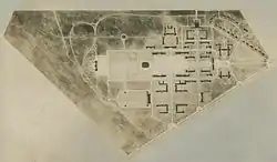 Lovett expressed interest in flat farmland along Main Street north of Brays Bayou. Negotiations by Captain James A. Baker eventually led to a complicated land exchange with local entrepreneur George Hermann (namesake of Hermann Park), who owned 370 acres (150 hectares) on both sides of Main Street.[3] Through the deal and subsequent land exchanges, the Rice Institute had acquired 278 acres (113 hectares) fronting the west side of Main by 1910.[3] The modern 290-acre (120-hectare) campus was not completed, however, until 1921, when a small parcel owned by DuPont was finally acquired.[3]