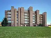 Stony Brook University is the largest residential public school in the state of New York, with nearly 10,000 students choosing to live on campus.[94] While the vast majority of housing is located on Stony Brook's West Campus, residential options are available at the East Campus and Stony Brook Southampton for undergraduate students, graduate students and their families. First-year students are divided into residential communities based on a system of "Undergraduate Colleges" that bring together students of similar interests.[95] In the 1960s, the Stony Brook University administration decided to name its dormitory buildings after the theme of "Great Deceased New Yorkers."[96]