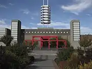 The Stony Brook Union is the main student union on campus, located on John S. Toll Drive. It opened in 1970 as the first building on campus dedicated specifically for student life.[11] In the past, the building was known as the "living room of the campus" and home to facilities including a bowling alley, post office, bookstore and campus dining.[12] It used to be the home of Stony Brook's college radio station WUSB as well as University Café, the last-standing bar on campus.[13] The building closed in 2016 before undergoing a three-year, $63.4 million renovation, reopening in 2020.[11][14] The new Union building is three stories tall, takes up 170,000 square feet and bears modernist and neoclassical architectural styles, with brick, stone, metal and glass finishes. It currently serves over 40 different student and faculty organizations.[11]