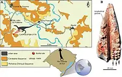 The Candelária Formation, in other literature also referred to as Candelária Sequence,[1][2][3] is a sedimentary formation of the Santa Maria Group (also called Santa Maria Supersequence) in the Paraná Basin in Rio Grande do Sul, southeastern Brazil.[4] The formation dates to the Carnian of the Late Triassic, locally referred to as Tuvalian, from 231.4 to approximately 222 Ma.