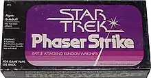 Star Trek: Phaser Strike is a shoot 'em up video game that was published by Milton Bradley in 1979, and released for the Microvision at the same time as the film Star Trek: The Motion Picture. In the game, the player must destroy ships with phaser banks located at the bottom of the screen. The Star Trek name was later dropped and the game was sold as Phaser Strike. It was sold under other names internationally: Shooting Star in West Germany, Italy and the UK, and Cannon Phaser in France and Canada.