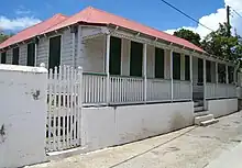 The town's historical features also include a Dutch Reformed church built in 1755,[8] which is partly in ruins but still accessible (its tower can be climbed for long-distance views), various restored 18th-century merchants' residences – including the oldest one, the Gezaghebber House (former Lieutenant Governor's residence) on Kerkstraat – and restored wooden Caribbean-style houses. Snorkeling in Oranje Bay is also interesting because of the parts of 18th century buildings on the bay side that were swept into the sea.[9]