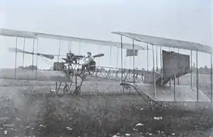 Between December 1909 and the first few months of 1910, Caproni worked on the construction of the Ca.1 in an improvised workshop which he had set up inside a warehouse with the help of three carpenters.[3][4] However, because of the lack of any surface suitable for having an aircraft take off and land in Trentino, Caproni decided to move to Lombardy in order to carry out the test flights. He thus joined his elder brother, Federico (who had graduated from the Bocconi University of Milan shortly before), and asked the Arma del Genio (the military engineering corps of the Esercito Italiano) for permission to settle at the cascina of Malpensa, in semi-desert area which at the time was in use as a training ground for the cavalry. The permission was granted and so, after building a hangar close to the cascina, on 5 April 1910, the two Caproni brothers and their collaborators, Ernesto "Ernestin" Gaias and Ernesto "Erneston" Contrini from Arco, moved to Malpensa.[4] The parts of the Ca.1 that had already been assembled were transported from Arco to Ala on carriages, and then reached Gallarate by train; their journey started on 8 April and ended in Malpensa on 11 April.[5]
