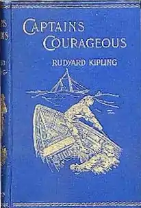 Captains Courageous: A Story of the Grand Banks is an 1897 novel by Rudyard Kipling that follows the adventures of fifteen-year-old Harvey Cheyne Jr., the spoiled son of a railroad tycoon, after he is saved from drowning by a Portuguese fisherman in the north Atlantic. The novel originally appeared as a serialisation in McClure's, beginning with the November 1896 edition with the last instalment appearing in May 1897. In that year it was then published in its entirety as a novel, first in the United States by Doubleday, and a month later in the United Kingdom by Macmillan.[1] It is Kipling's only novel set entirely in North America.[1] In 1900, Teddy Roosevelt extolled the book in his essay "What We Can Expect of the American Boy," praising Kipling for describing "in the liveliest way just what a boy should be and do."[3]