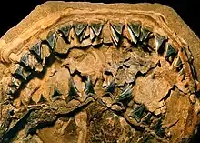 | Holotype jaws and teeth (UF 226255), also known as the Sacaco specimen | |