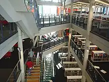 Cardiff Central Library (now Cardiff Central Library Hub) (Welsh: Llyfrgell Ganolog Caerdydd) is the main library in the city centre of Cardiff, Wales. It offers a public library service and is open six days a week. Four buildings have been named as such, with the newest building opening on 14 March 2009 and officially being opened a few months later on 18 June 2009 by the Manic Street Preachers.[1] The first Cardiff library was opened in 1861 as the Cardiff Free Library, later expanded and known as the Cardiff Free Library, Museum and Schools for Science and Art.