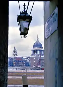 View of Saint Paul's Cathedral from Cardinal Cap Alley before the alley was gated in the early 1990s