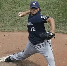 Carlos Manuel Villanueva Paulino (born November 28, 1983) is a Dominican former professional baseball pitcher. He played in Major League Baseball (MLB) for the Milwaukee Brewers, Toronto Blue Jays, Chicago Cubs, St. Louis Cardinals and San Diego Padres. He currently works as Special Assistant to the General Manager/Player Development for the Milwaukee Brewers.[1]