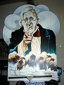 The Schnitzelbank singer is a bard that sings satirical verses about current events in Basel or from around the world. The verses are sung in Swiss German and the singer will show Helge (illustrations) to the current verse. Similar verses are also distributed by the various Cliques in flyers known as Zeedel.[4] The singers appear regularly in the restaurants and bars on Monday and Wednesday night and in the clique-cellars (local Clique meeting halls) on Tuesday.