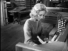 Hilligoss (as Mary Henry) playing on a Hammond organ.