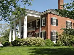 Carr's Hill, also known as the University of Virginia President's House, is a historic home located near Charlottesville, Albemarle County, Virginia. Carr's Hill was built in 1906, and is a two-story, five bay brick dwelling in the Colonial Revival style. It features a prominent double-height pedimented portico in the Doric order, a slate covered hipped roof, and two tall chimneys. It was designed by the prominent architectural firm of McKim, Mead & White. The house overlooks the university chapel and the "Academical Village." Also on the property are the contributing Guest Cottage (c. 1840), Buckingham Palace (1856), the Leake Cottage (c. 1870), carriage house (1908), the landscape (site), and two iron capitals (objects) that were salvaged from the ruins of the Robert Mills Rotunda Annex after the 1895 fire.[3]