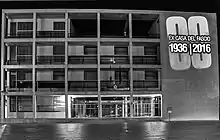 The Casa del Fascio of Como (Italian pronunciation: [ˈkaːza del ˈfaʃʃo, ˈkaːsa-]), also called Palazzo Terragni, is a building located in Como, Italy, in the Piazza del Popolo (former Piazza Impero), and it is one of the masterpieces of Italian Modern Architecture.[1] It was designed by Italian architect Giuseppe Terragni (1904-1943).[1] It was inaugurated in 1936 as the local office of the National Fascist Party.[2] After the fall of Fascism in 1945, it was used by the National Liberation Committee Parties and in 1957, it became the headquarters of the local Finance Police, who still occupy it.[2] The building has a square plan and four stories.