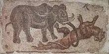 Mosaic of an elephant attacking a tiger, from Roman Syria, which occupied parts of what is now Anatolia and Mesopotamia[38]