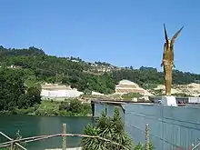 On 4 March 2001 at 9 pm, a 116-year-old metal bridge linking the parish/council of Sobrado (a.k.a. Castelo de Paiva) and Entre-os-Rios (a bridge connecting Castelo de Paiva to Penafiel) collapsed, killing 59 people, including those in a bus from the Asadouro company and three cars that were attempting to get to the other side of the Douro river.[3] The Hintze Ribeiro Bridge disaster prompted accusations of government negligence, and the Public Works minister Jorge Coelho resigned shortly after the disaster. There is a monument near the bridge in honour of the people who died, known as the "Anjo de Portugal" (The Angel of Portugal).