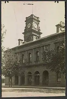 A building fund was set up in 1923 using a donation of £100 by Sir John and Lady Higgins.[45] A site in Templeton Street was purchased for £1200 but later sold to acquire the present block in Lyttleton Street in 1927 for about £300. That year in a visit to Castlemaine the Hon George Prendergast enabled a deputation to seek a grant to augment the building fund, to which he offered £1000 on the basis of £1 for every £2 raised locally.[46] Walter J. Whitchell promised £500 for the building fund should the balance be found when the fund held only £760. With the building costed at £3,500, an appeal for funds from the public was launched. Despite the onset of the Depression, £3,250 was raised in only six weeks from private individuals and companies the Bank of Australasia, Ball & Welch and Bryant & May,[24] augmented by the promised State government grant of £1,000, and afterward a further £500. With furnishings, the total cost was £4,132.[47]