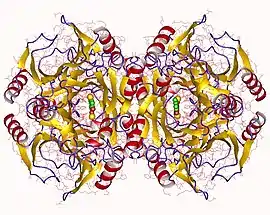 ![]() Catechol 2,3-dioxygenase tetramer, Pseudomonas alkylphenolica | |||||||||