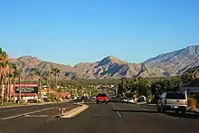 Cathedral City sits at the northwestern end of the Coachella Valley between the San Bernardino Mountains to the north, and the San Jacinto Mountains to the south, with the San Gorgonio Pass to the West. The earliest established inhabitants of this region were the Cahuilla Indians. They arrived in the area around 3,000 BCE.[10] The Cahuilla were organized into bands of about 600 to 800 people, and it was the Agua Caliente Band of Cahuilla Indians who inhabited the lands that included what would become Cathedral City, California.[11]